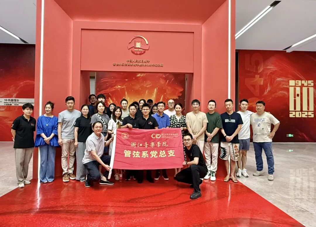 为深入推进新时代立德树人工程,弘扬爱国主义精神,传承红色基因。9月12日教师报到第一天,管弦系党总支将全体教职工“开学第一会”设在浙江省博物馆“热血沃东南 浙江抗战的烽火岁月——纪念中国人民抗日战争暨世界反法西斯战争胜利80周年纪念展”现场,接受了一堂生动的爱国教育课。