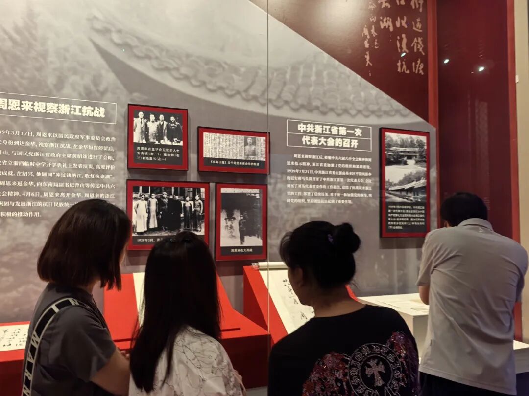 管弦系全体教师在展览中,认真聆听了东南前沿的之江大地14年救亡图存的抗战故事。从“千人坑”前纪念碑到“受降村”见证的胜利时刻,从淞沪会战中浙籍将士的浴血奋战,到敌后抗日根据地的艰苦斗争,从文化界的抗日救亡运动到民众对里斯本丸战俘和杜立特行动人员的无私救援,见证了浙江儿女的烽火岁月、众志成城的英雄篇章。在现场我们还仔细观看了周恩来题词、茅以升手稿、日军受降桌等重点展品。一件件历史文物、一张张泛黄照片、一份份沉甸甸的档案,全体教职工跟着展览一起回溯历史,深刻感受浙江人民在抗日御侮中体现的精神力量。