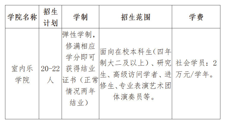 浙江音乐学院室内乐学院2022年秋季招生公告