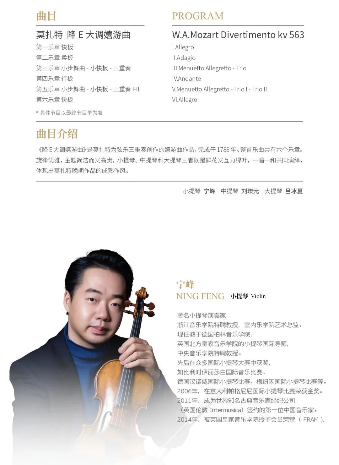 【音讯】室内乐学院春季乐季——莫扎特专场室内乐音乐会