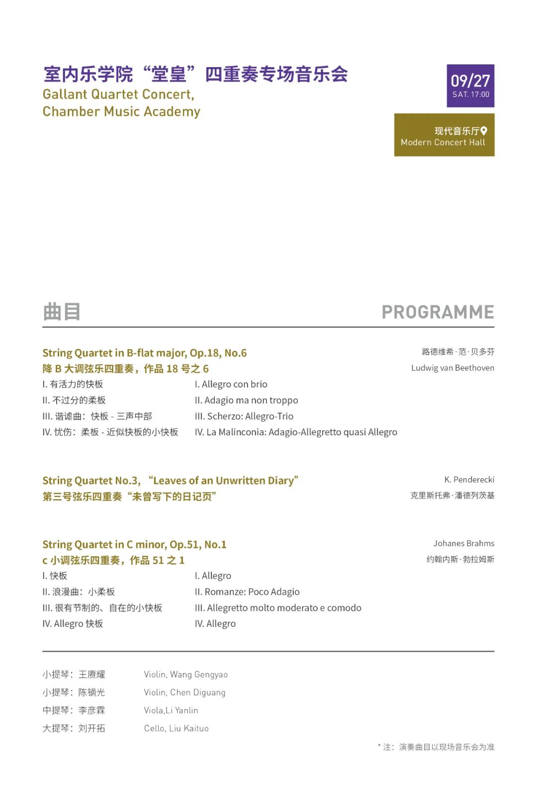 室内乐音乐节 | 9.27音乐会&大师班日程
