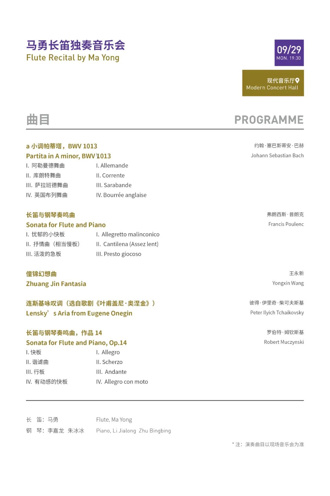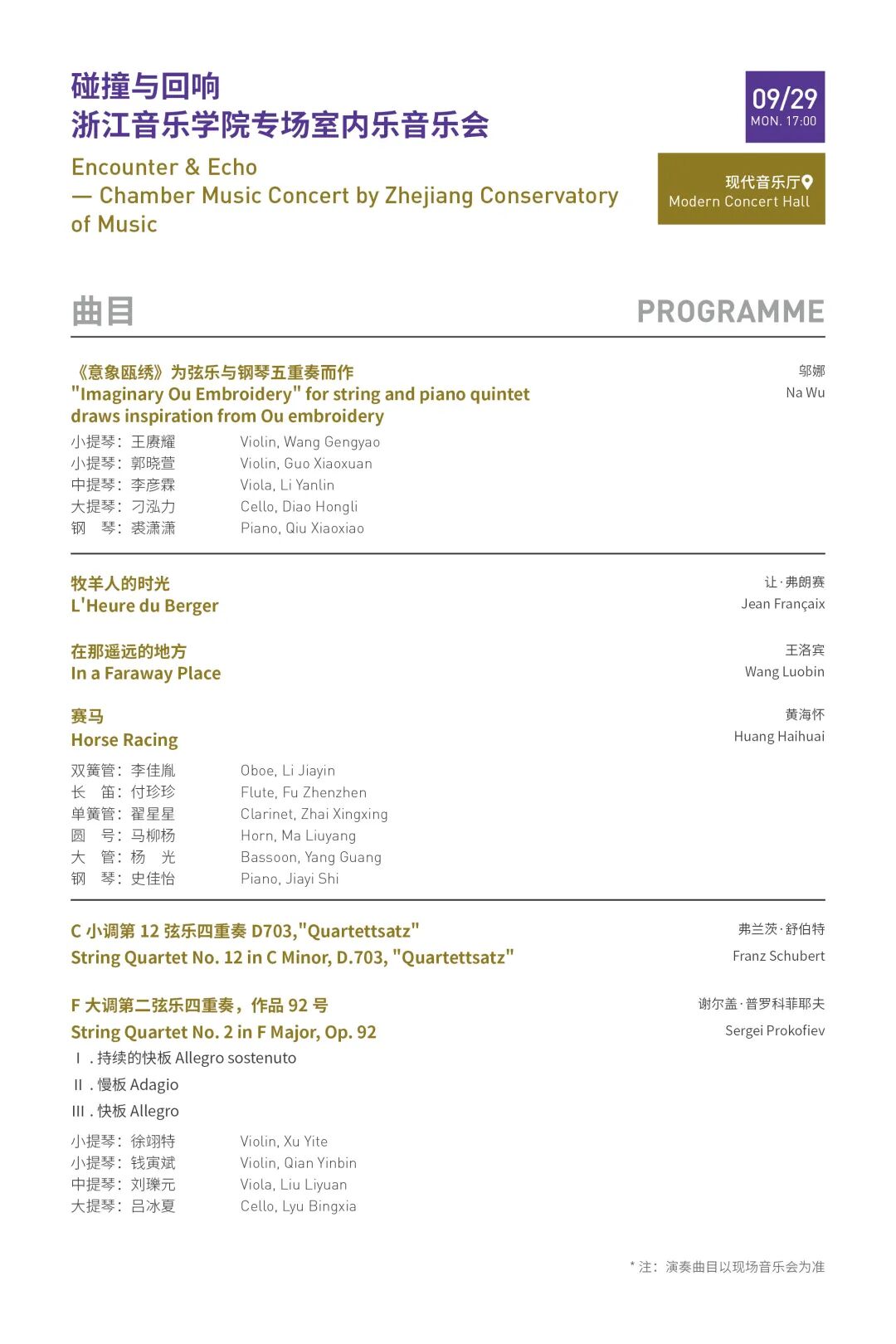 室内乐音乐节 | 9.29音乐会&大师班日程