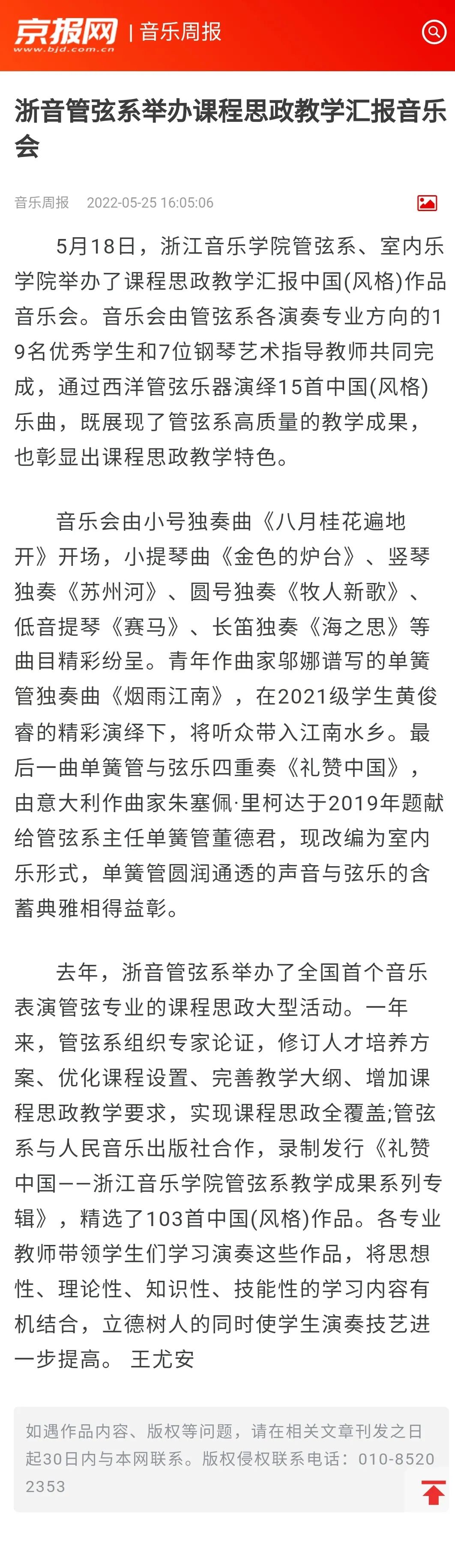 音乐周报报道管弦系课程思政教学汇报音乐会