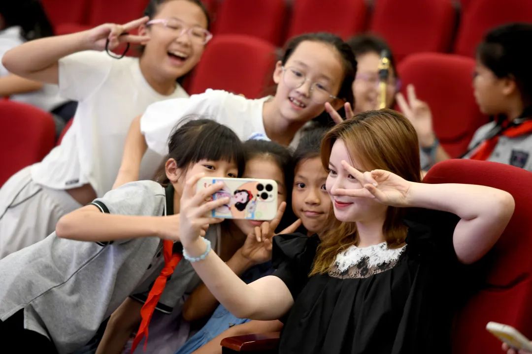 参营少先队员代表、浙江音乐学院的大学生志愿者代表分享了感悟。王店建设中心小学副校长施佳林、读嘉运营中心副总监叶丰收也分享了他们对于本次活动的体会。