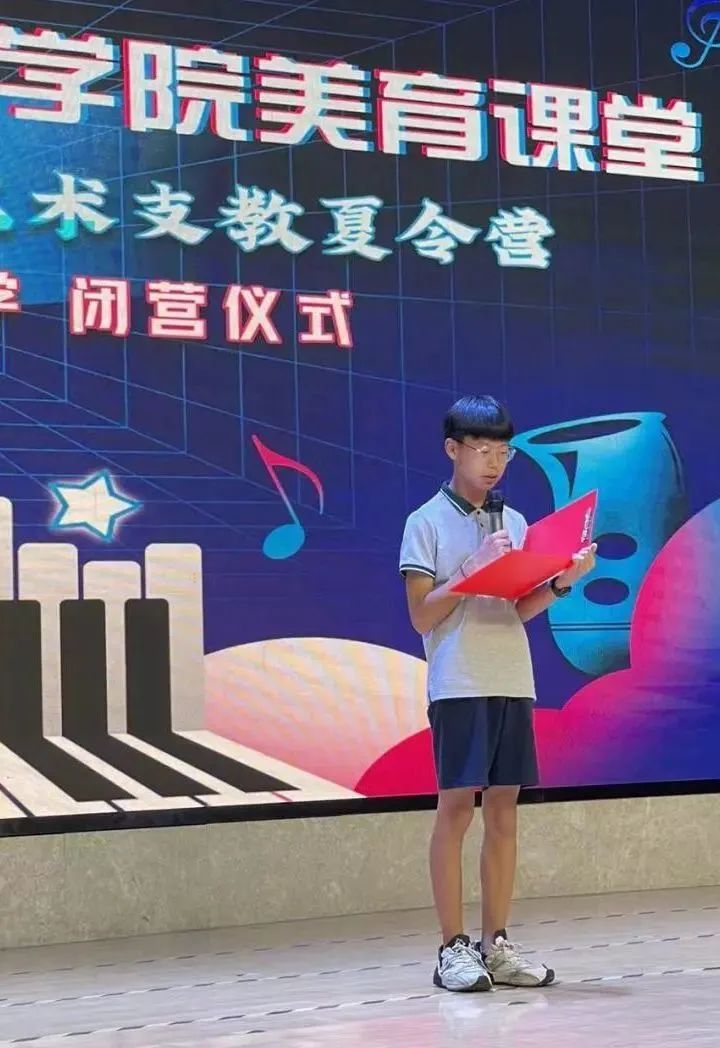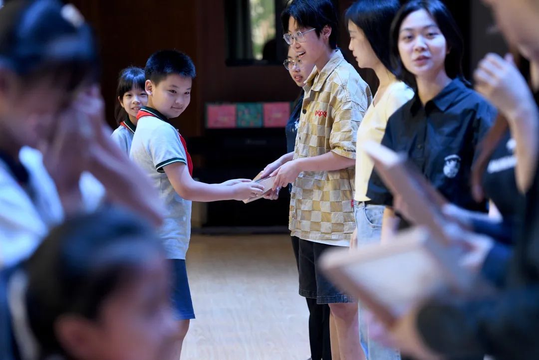 除此以外,为助推少年儿童开展沉浸式思想与艺术教育,并在“二十大”即将召开之际,让同学们能在音乐中感悟复兴伟业,在闭营式上还安排了浙江音乐学院“行走的宣讲留声机”理论实践团队为大家上了一堂生动的“微党课”。