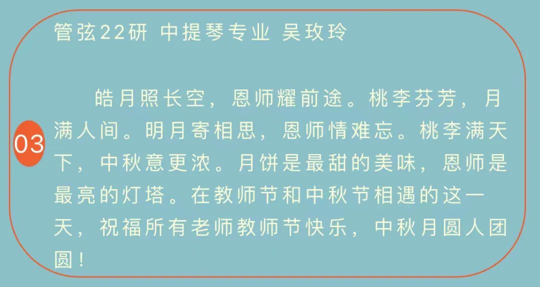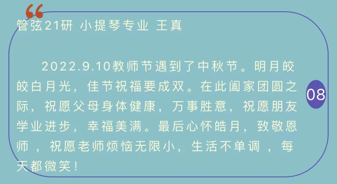 当处疫情之下,很多人或许意志低迷,趁此好时节,管弦系同学录制祝福视频给大家,愿花好月圆,中秋节快乐。