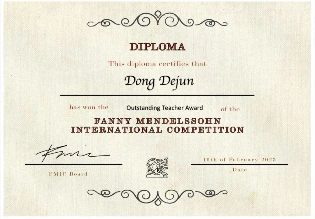 浙江音乐学院管弦系主任、单簧管教授董德君作为指导教师,荣获杰出教师奖。