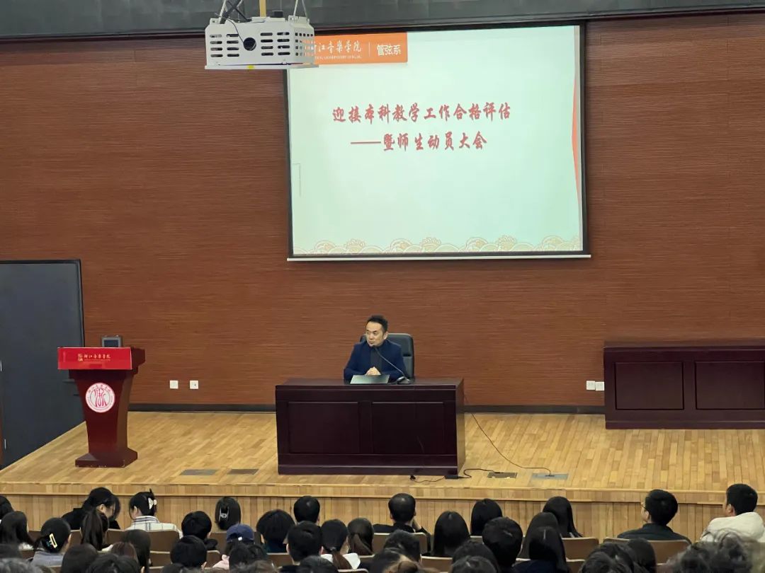 3月29日,为迎接教育部本科教学工作合格评估,浙江音乐学院管弦系在学术报告厅召开本科教学工作合格评估冲刺动员会暨纪律教育大会。全系教职工、外聘教师、本科生及研究生参加会议,会议由党总支书记魏鹂主持。