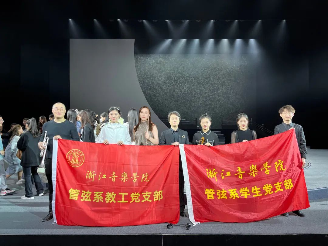 排练时间紧、演出任务重,管弦系领导班子高度重视,积极准备,全力配合,组建《李清照》临时党支部,确保演出圆满完成。师生党员坚持将学习贯彻习近平新时代中国特色社会主义思想的理论成果转化为工作动力,克服困难、妥善协调时间,利用中午休息、周末放假的时间,精心排练,有时直至深夜,所有的付出都为了在演出中展示最佳效果。