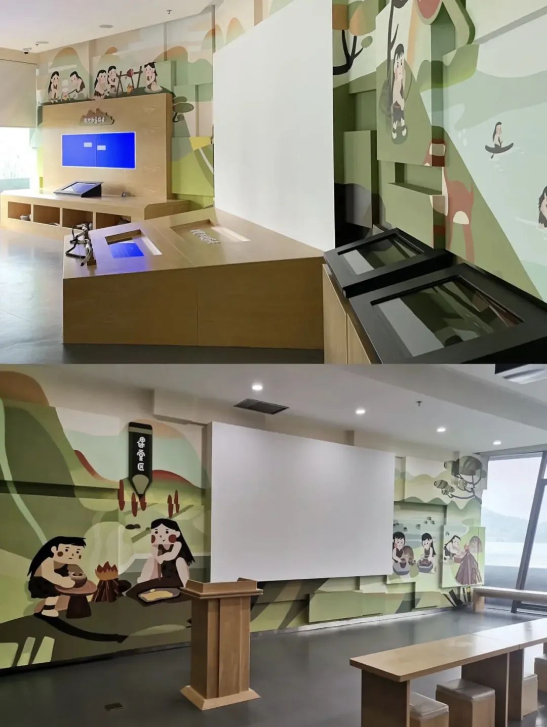 跨湖桥遗址博物馆包含三个展厅:“勇立潮头”主题厅、“中华第一舟”水下遗址原址保护厅、“部落学校”第二课堂展厅。三大展厅形成集学习、实践、探究于一体的多功能空间,不仅展现了跨湖桥先民创造了独木舟、与海潮相搏的史实,更彰显浙江人传承自祖先、流淌在血液里的进取精神。