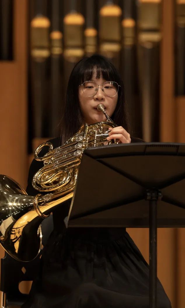 第六首铜管重奏《赞美高贵的葡萄酒》由管弦系铜管专业学生合作演奏,此首作品充满了富丽堂皇的高贵气质,描绘了不同种类葡萄酒的味道,用铜管乐器丰富且多变的音色以及作品本身音乐性的多元化元素将音乐会推向高潮。