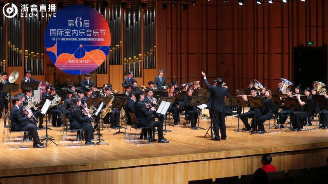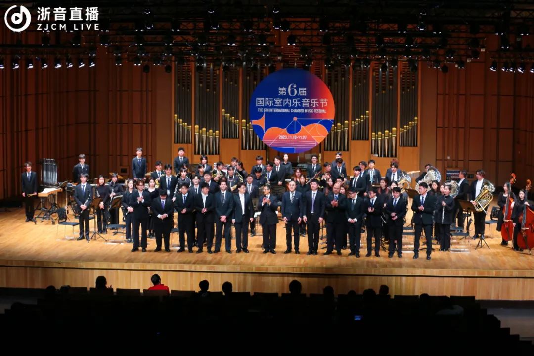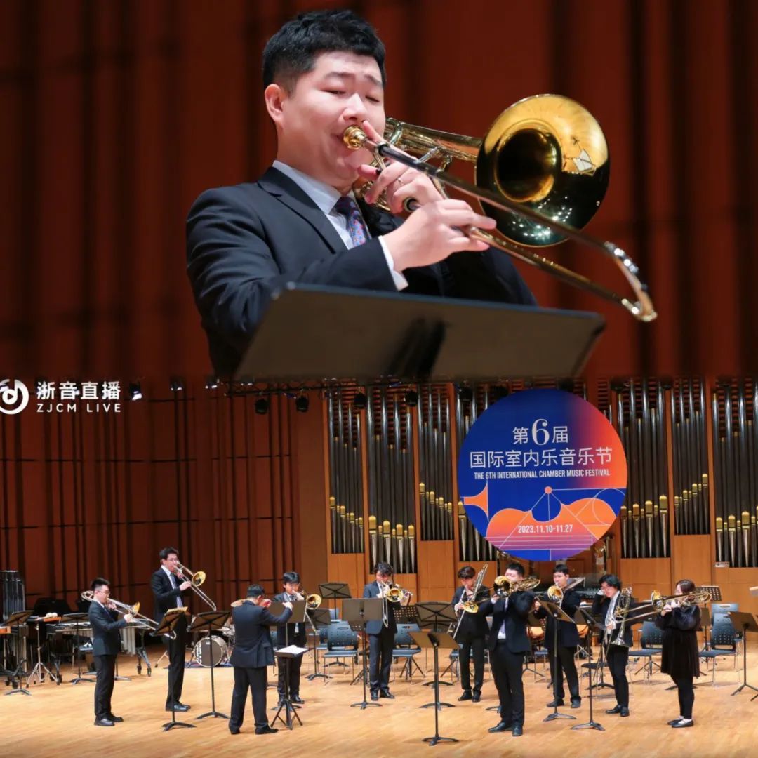 发布时间:2023-11-2011月16日晚,“欢呼新时代管乐专场音乐会”在浙江音乐学院的标准音乐厅上演。来自中央音乐学院的教授、博士研究生导师赵瑞林携手杭州铜管重奏团及浙江音乐学院交响管乐团,为热爱音乐的听众们带来了一场精彩绝伦的音乐演奏盛宴。