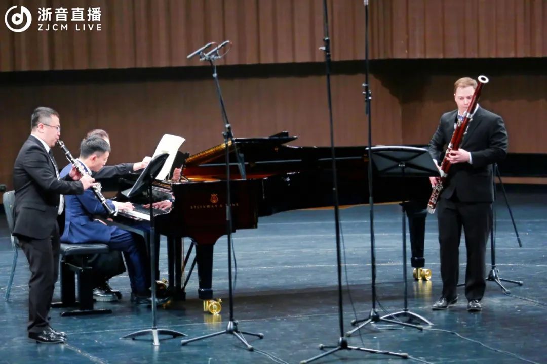 11月24日晚,香港中文大学(深圳)音乐学院的四位青年教师:单簧管演奏家衣丞、女高音歌唱家周旎、美国巴松演奏家Benjamin Moermond与协作钢琴家罗旭首次来到浙音举办室内乐音乐会。现场,四位青年教师演奏了五首颇具深度和学术价值的室内乐作品,充分展现了香港中文大学(深圳)音乐学院教师们的专业水准。