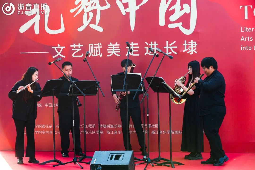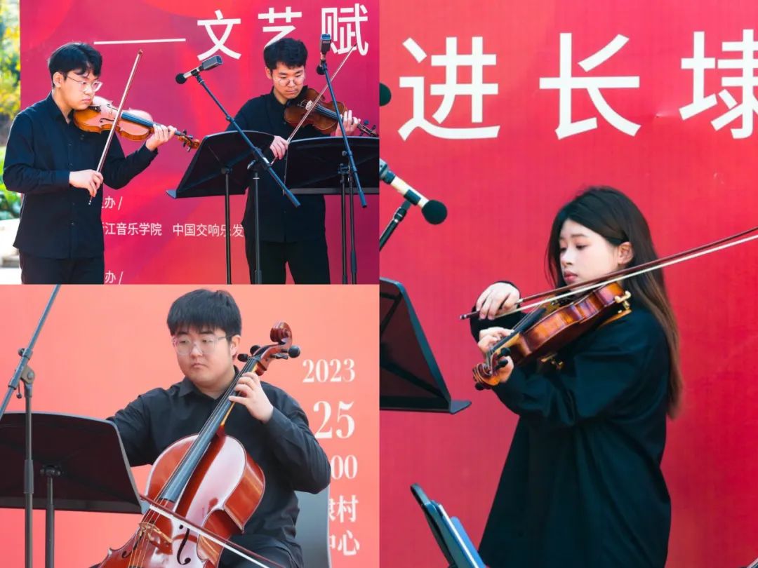 近年来,浙江音乐学院管弦系与音乐工程系坚持以习近平新时代中国特色社会主义思想为指导,深入实施“八八战略”、以“两个先行”打造“重要窗口”的工作要求,充分发挥学科特色和专业优势,精心组织开展“文艺赋美”工程系列主题实践活动。此次文艺赋美走进长埭,正是推动全域文化繁荣、全民精神富有的具体行动。此次活动不仅受到当地百姓的热烈欢迎,还通过线上直播的方式,将高质量的文艺作品传送至文化礼堂,让观众足不出户就能通过网络平台感受文化艺术的魅力。接下来,管弦系与音乐工程系还将继续强强联合,持续开展文艺惠民活动,用“文化星火”点亮城乡生活,推动“文艺赋美”走深走实,真正将艺术之花在未来乡村芳香四溢。