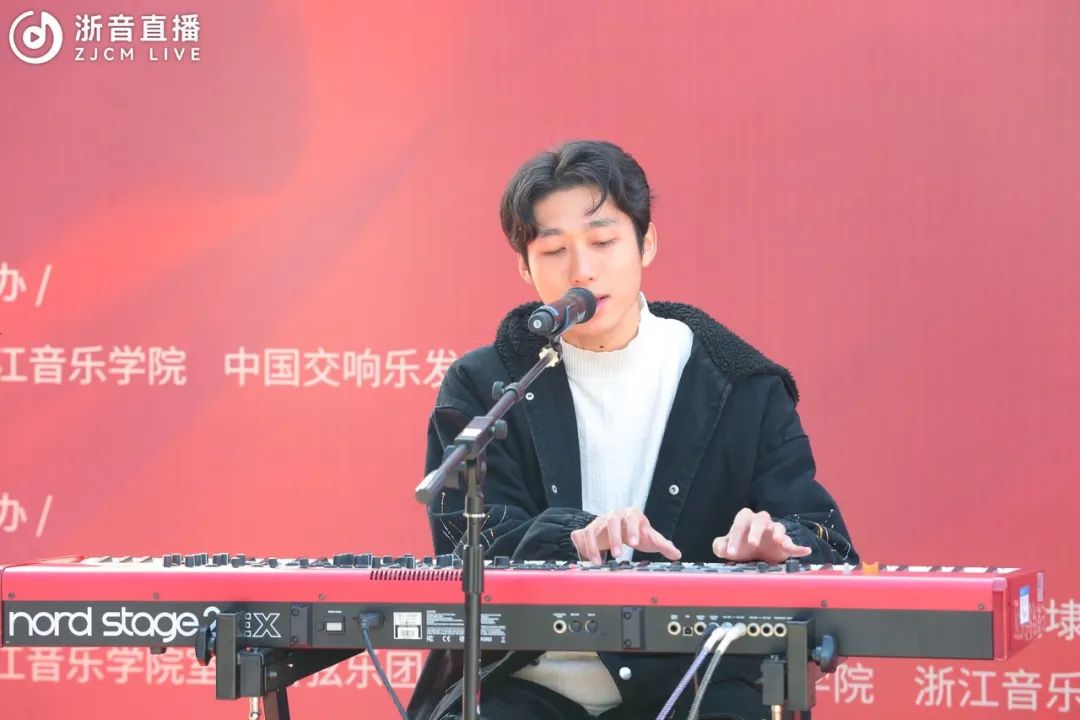 第四阶段,由音乐工程系学生肖泽川带来电子琴弹唱《看起来不错其实也还好》,这是一首RNB风格的流行歌,为音乐会增添了不同的色彩。学生杨衡、叶翔还携口风琴乐器,用全新的形式为大家带来的一首热门歌曲《如愿》,让观众们耳目一新。现场掌声不断,大家听得意犹未尽。