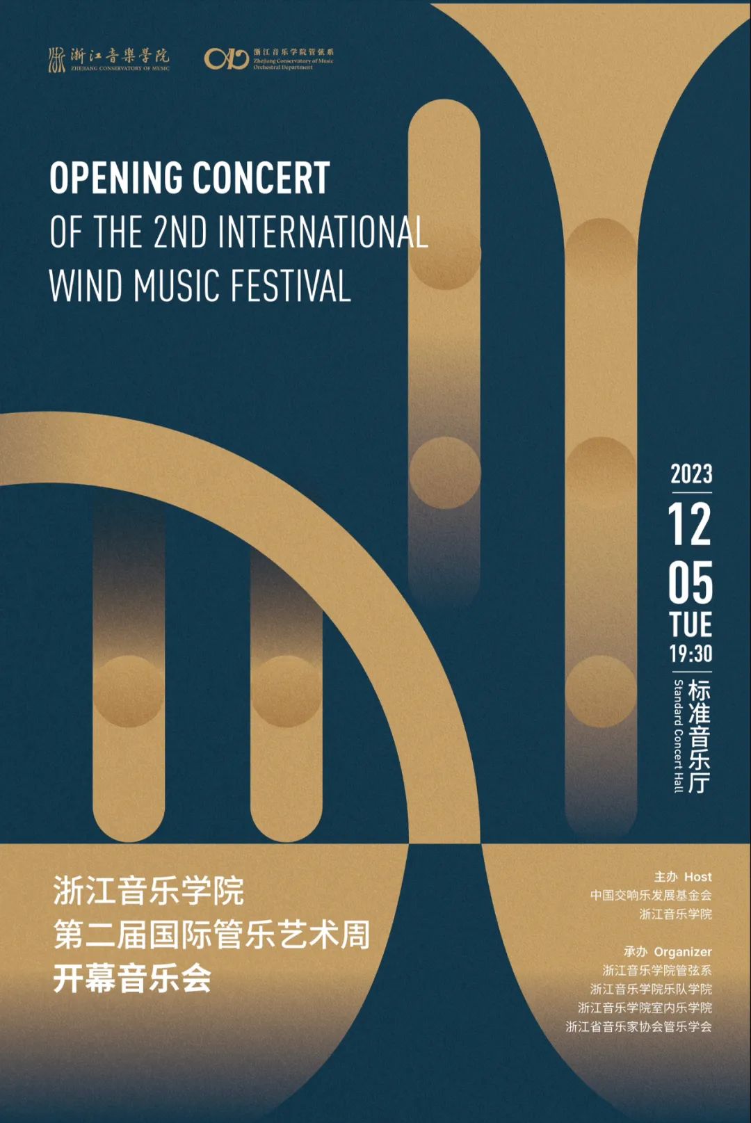 第二届国际管乐艺术周由中国交响乐发展基金会、浙江音乐学院主办,浙江音乐学院管弦系、浙江音乐学院乐队学院、浙江音乐学院室内乐学院、浙江省音乐家协会管乐学会承办。该品牌旨在促进国内外管乐艺术交流,在国际化视野中搭建高规格、高水平的管乐艺术实践与学术交流品牌,真正推动中国管乐艺术蓬勃发展。