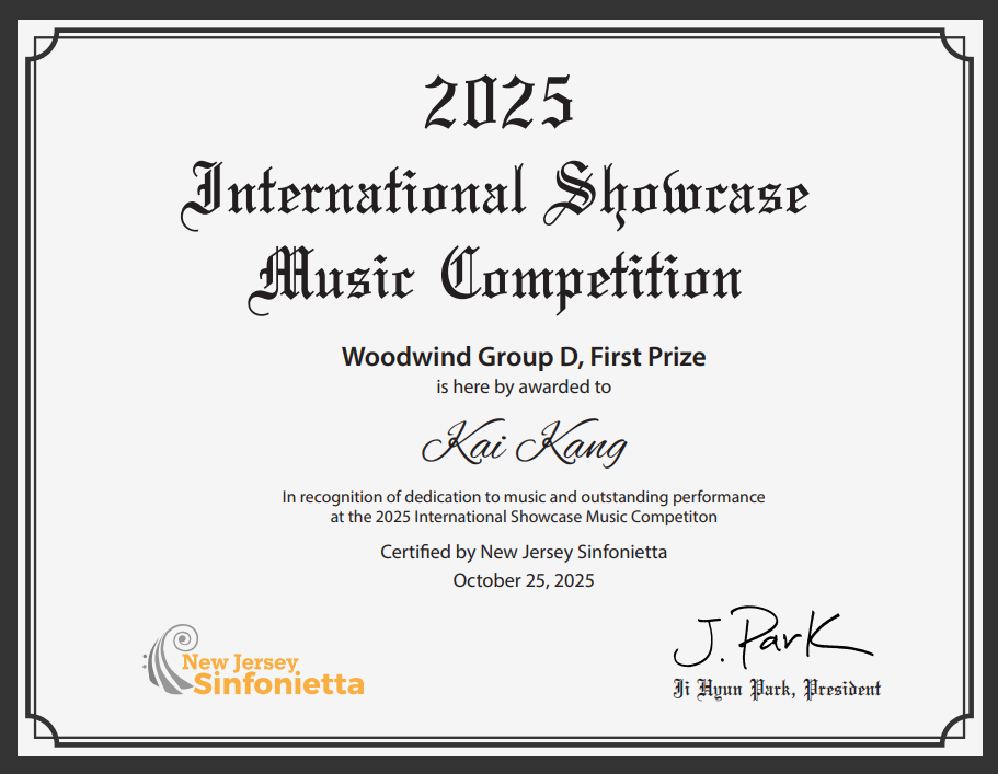 康凯,浙江音乐学院管弦系2023级单簧管专业本科生,师从浙江音乐学院董德君教授。2019年考入深圳艺术学校,12岁与陶然教授学习;2024年考入浙江音乐学院“李叔同学院”拔尖人才培养计划;2024年9月至2025年6月于西班牙维戈高等音乐学院交流学习,并获得此项目内唯一双荣誉专业满分;在2024年加拿大皇家之声国际音乐比赛中荣获重奏组一等奖;在2024年恩科国际音乐比赛中荣获一等奖; 2025年荣获ICA国际单簧管协会青年艺术家大赛荣誉奖项; 2023克拉拉-舒曼国际音乐比赛少年b组第一名;在2022年荣获第二届全国青少年线上单簧管比赛专业A组荣获二等奖;在2022年新加坡国际器乐独奏比赛&重奏比赛中荣获独奏专业E组荣耀金奖;在2020年IMAARTS 音乐艺术节城市选拔赛中荣获金奖;在2017年第四届香港国际音乐节中荣获一等奖。