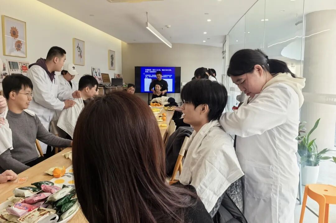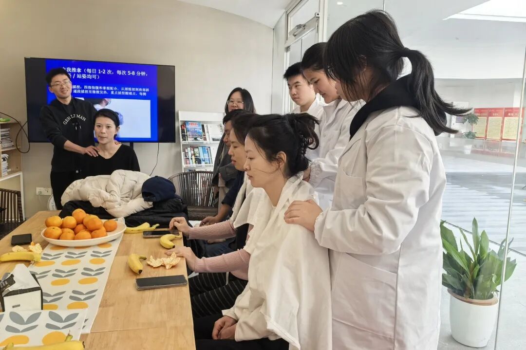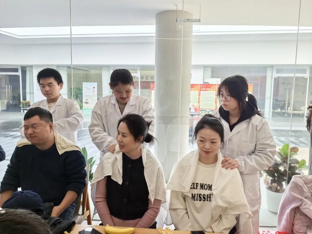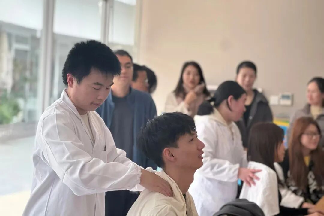 在管弦系学子为省盲校同学的音乐梦想赋能的同时,省盲校师生也回馈了真挚情感。3日下午,职高部张舟桥主任在校党群服务中心,现场分享并示范了颈肩部自我推拿方法,让大家快速掌握了日常放松的实用技能。省盲校学生通过娴熟的推拿手法舒缓了老师们肌肉的疲惫,当音乐的热忱遇上技能的关怀,两校师生在互动中各展所长、互相成就,校园边界被打破,互助之暖在彼此心间悄然传递。这场双向奔赴的交流,不仅是专业知识与技能的共享,更是责任担当与共情能力的培养。