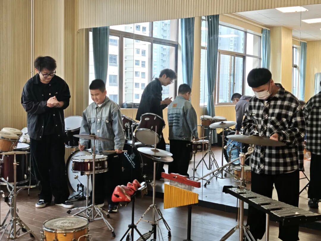 以音为媒,解锁音乐新可能。在省盲校的管乐团课堂上,管弦系的师生们面对长笛、单簧管、双簧管、打击乐、小号、长号、大号、圆号等乐器,逐一开展手把手教学。“吹长笛时,气息要像缓缓流淌的溪水,均匀而绵长”“单簧管的按键力度要轻柔,指尖贴合按键的位置可以再调整一点点”……