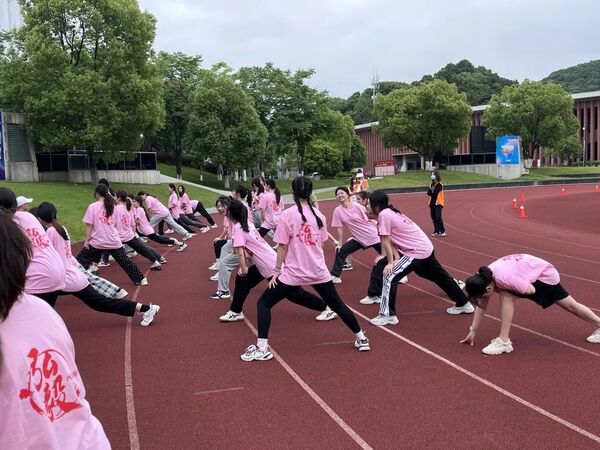 青春绚丽似朝阳,19日一早,51名同学早早地便在操场进行热身,管弦系辅导员、各专业老师也都到现场为同学们进行加油打气。