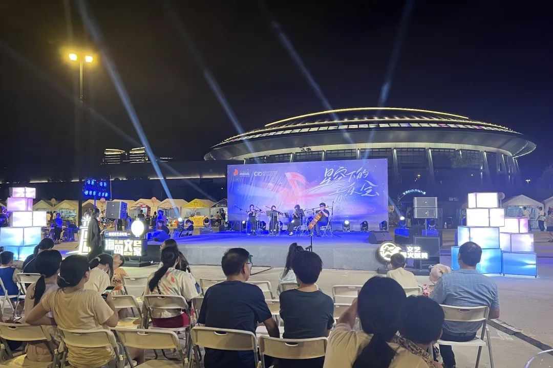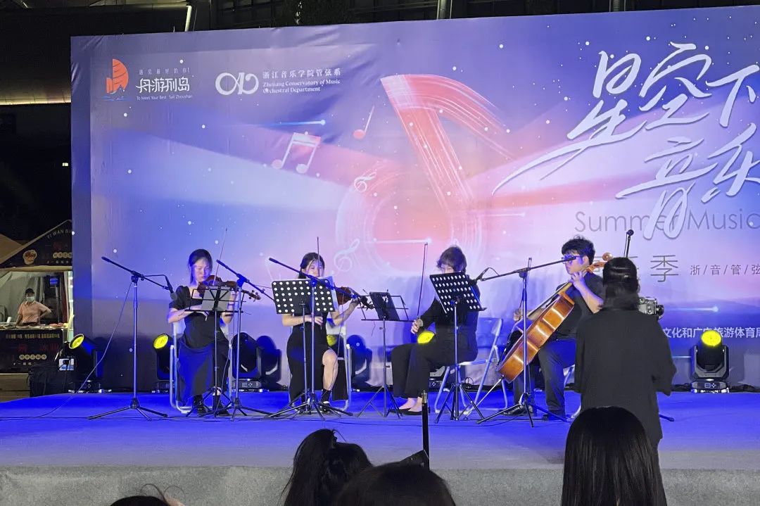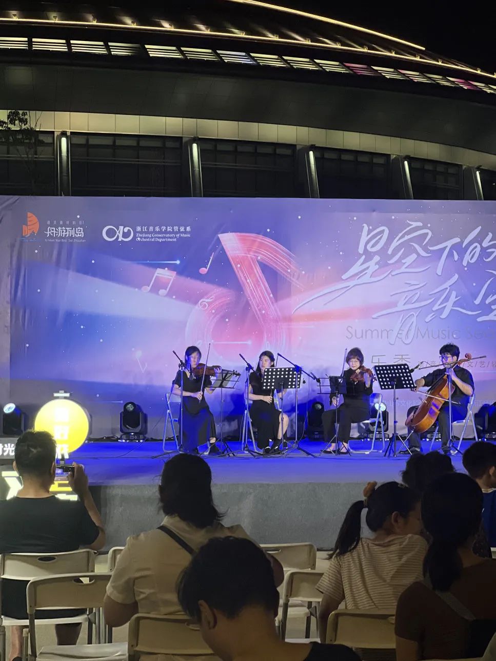 7月14日晚,“快乐音乐教室”实践团在舟山夜市开展“文艺赋美”——星空下的音乐会。