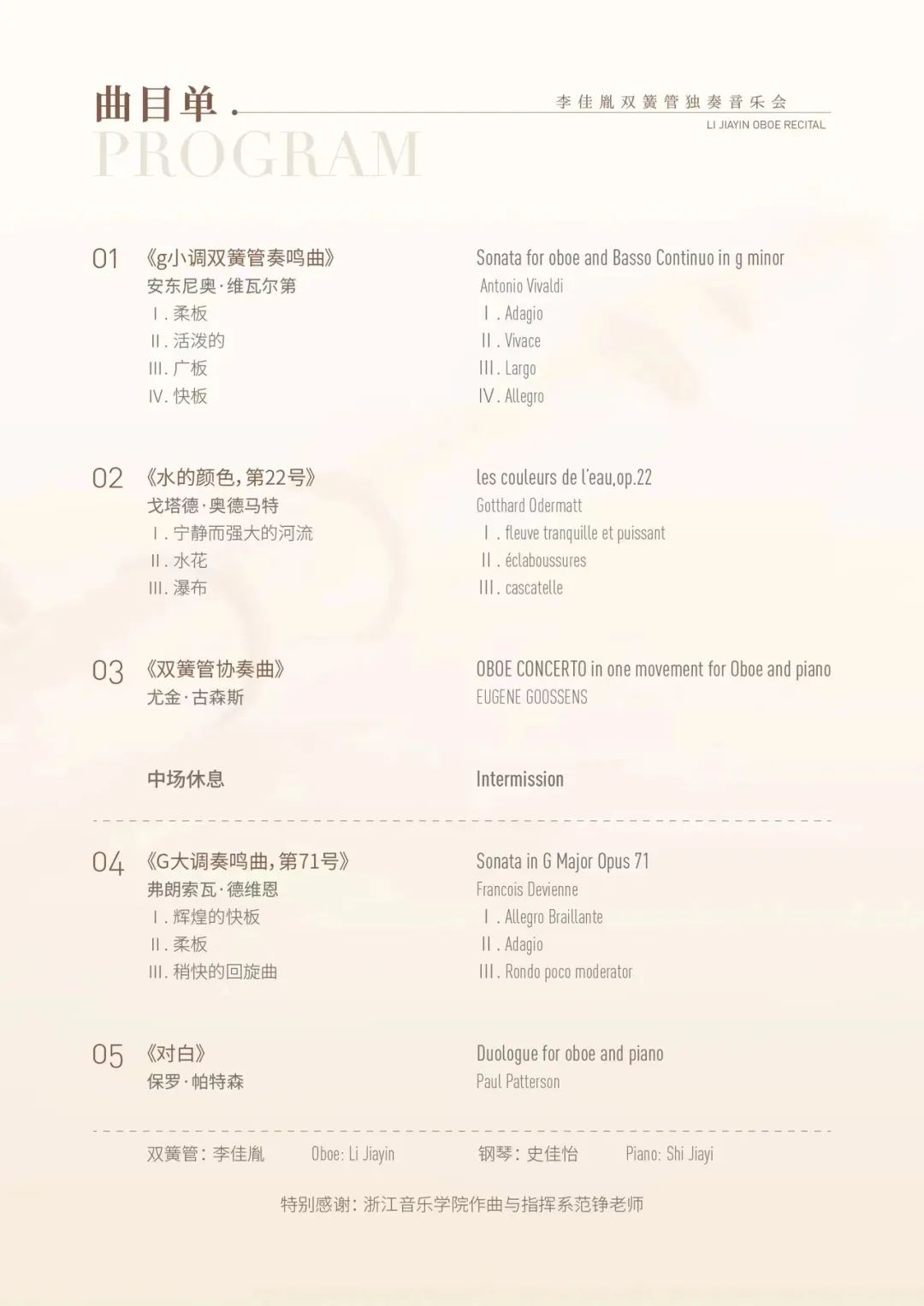 【预告】探索与挑战——李佳胤双簧管独奏音乐会