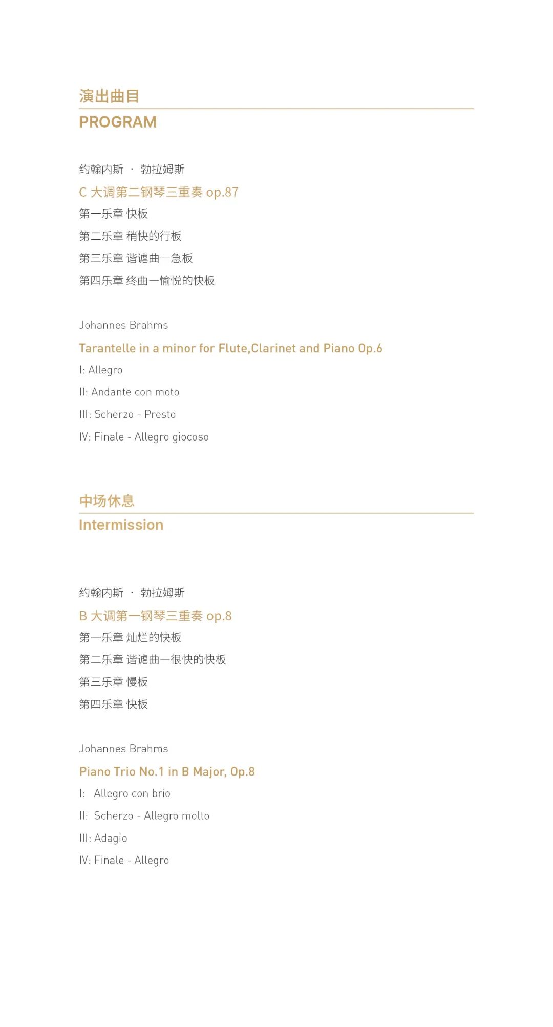 【预告】室内乐音乐节 | 长安三重奏勃拉姆斯作品专场音乐会