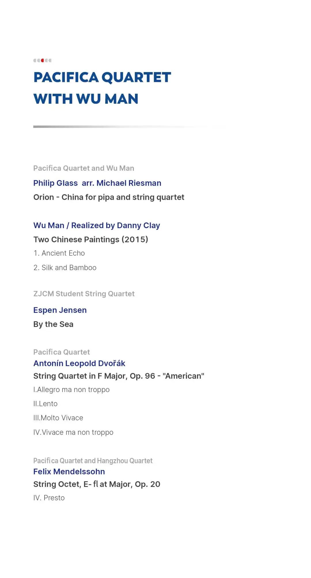 【预告】室内乐音乐节闭幕式 | 美国帕西菲克弦乐四重奏与吴蛮琵琶音乐会
