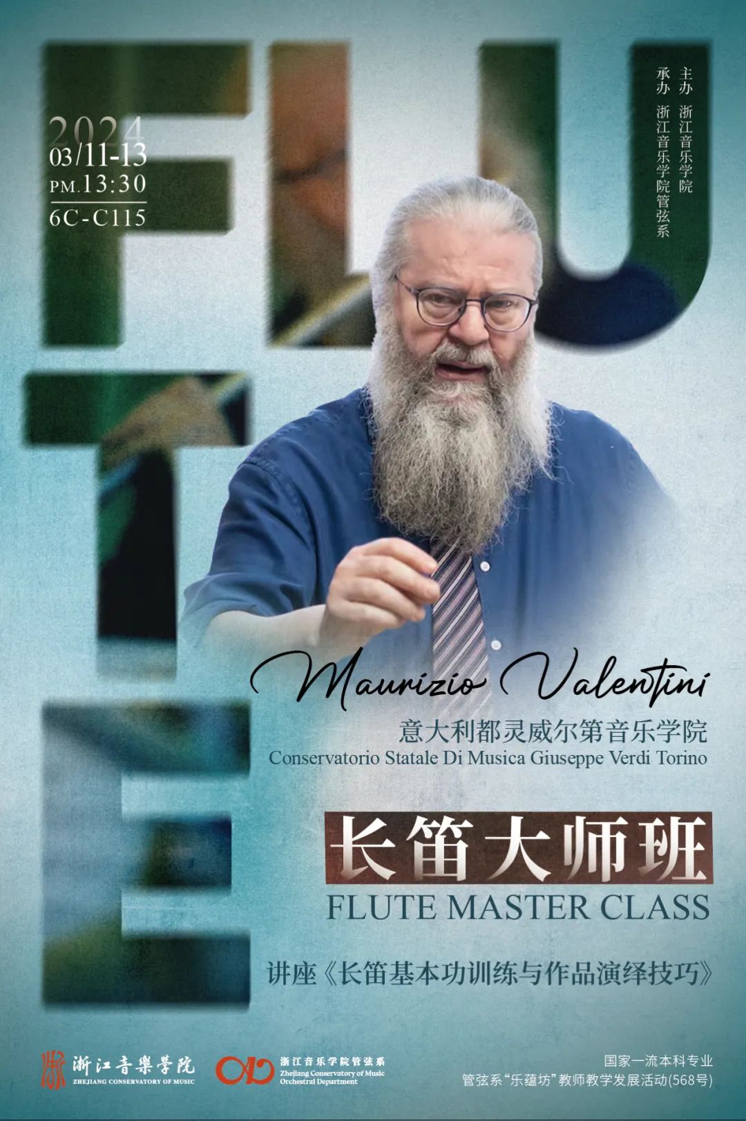 【音讯】意大利都灵威尔第音乐学院Maurizio Valentini长笛大师班