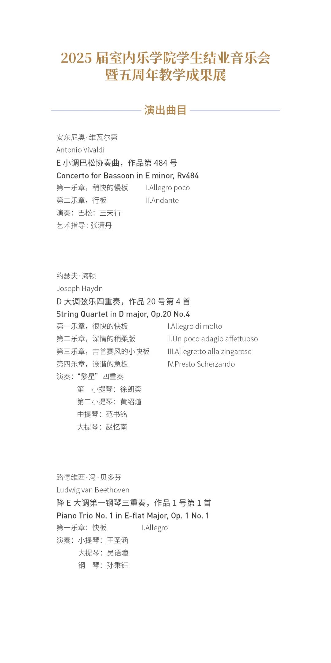 【预告】2025届室内乐学院学生结业音乐会暨五周年教学成果展