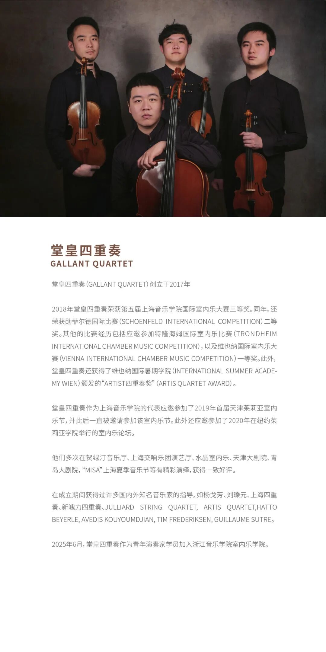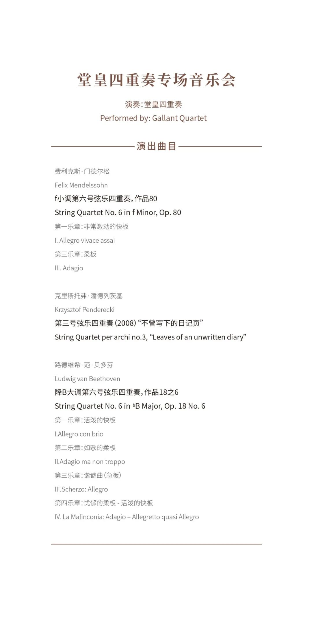 【预告】室内乐学院堂皇四重奏专场音乐会